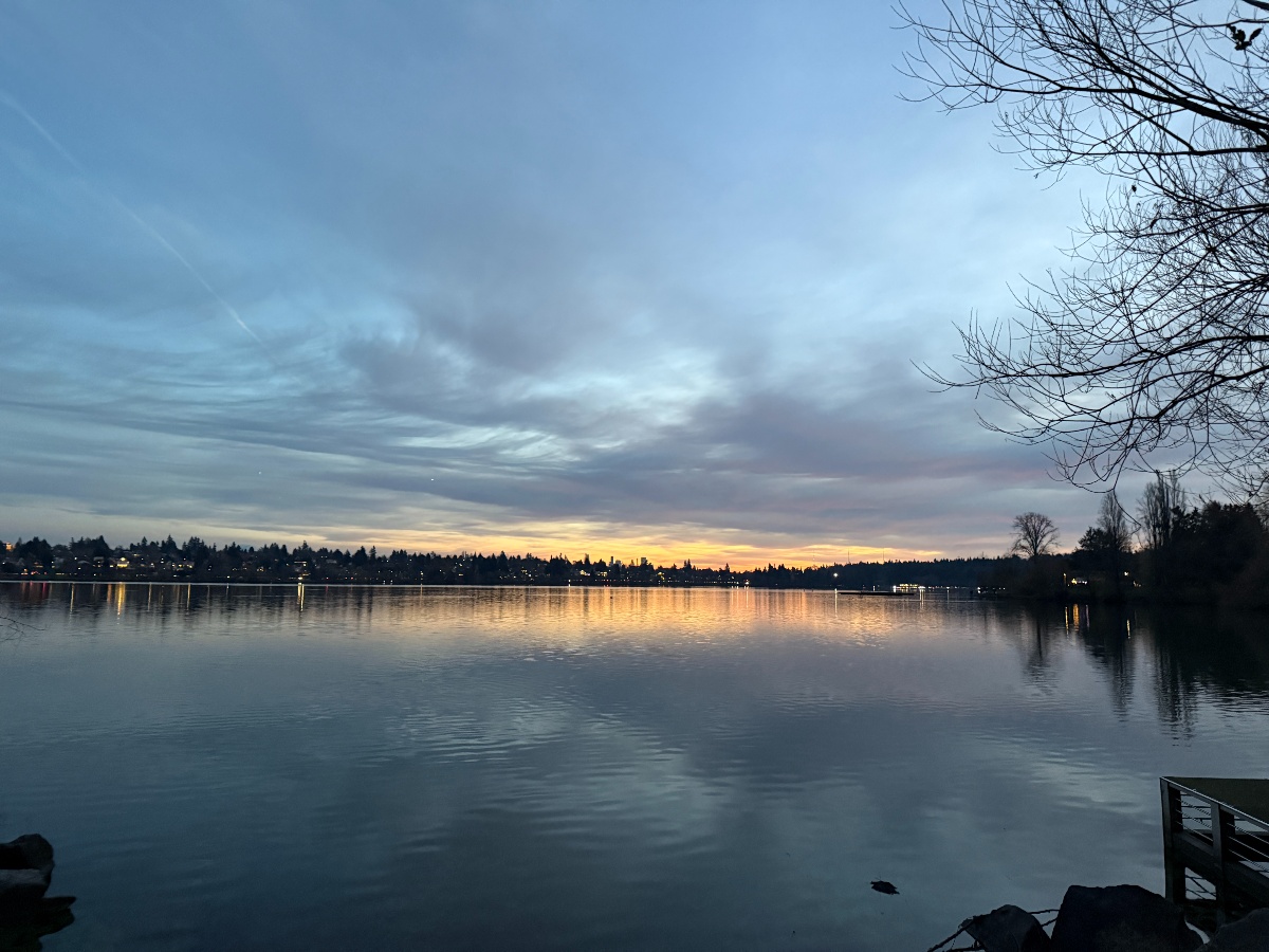 今週に入り、シアトルもようやく真冬らしい気温になってきました。相変わらず雨や曇りの日が多いのですが、そんな中でもふと、きれいな夕焼けが見えることがあります。「お!」と思わず立ち止まってしまう瞬間です。