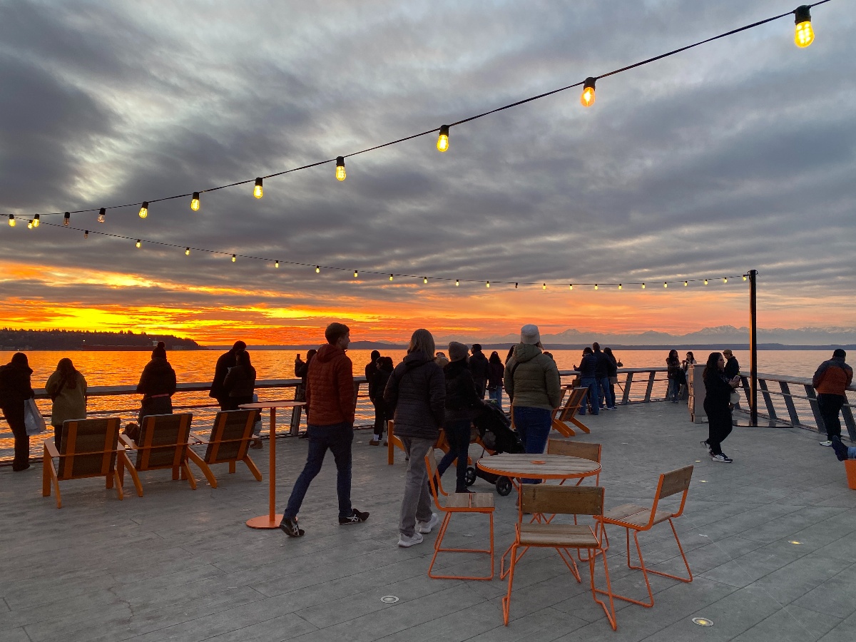 午前7時すぎ、日の出前のウォーターフロント。ゆっくり明るくなっていく海辺の景色は、シアトルらしいですね。