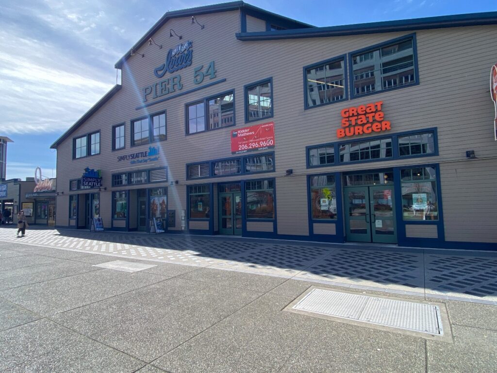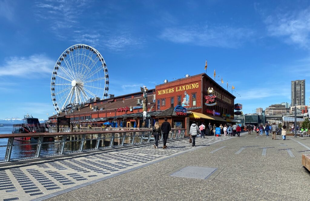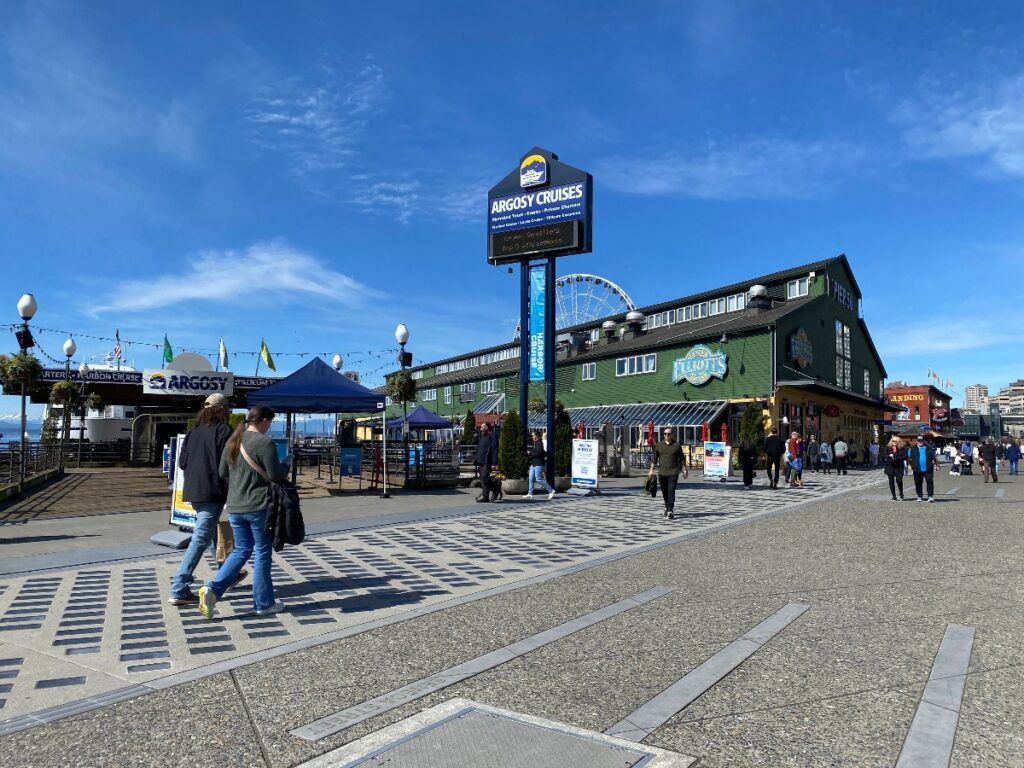 シアトル企業のアゴシー・クルーズの発着拠点として知られるピア。スターバックスをはじめとした飲食店やシアトルらしいTシャツ・雑貨を扱うショップが集まっています。