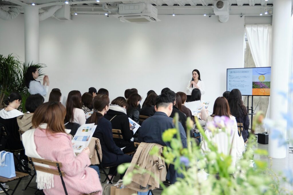 ブランドのローンチに際し、東京・表参道で発表会を開催しました。「ハンドクリーム1本でここまでの規模のイベントをやるのは珍しい」と驚かれましたが、この1本に全ての情熱を注いできたからこそ、胸を張ってお披露目できました。