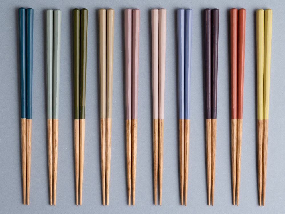福井県小浜市の老舗メーカーさんのお箸に出会って、一般消費者として長く使ってみて品質に確信が持てました。先端は滑り止め付きで、ディッシュウォッシャーにも入れられる。お子さん用の短めサイズや和柄、LGBTデザインのペア箸などバリエーションも用意します。北欧インテリアにも合う色を意識していて、とても素敵です。